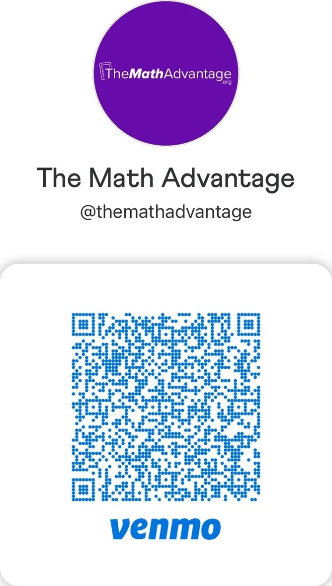 Payments can be made payable to ‘The Math Advantage’ via Venmo, Cash, or Check.